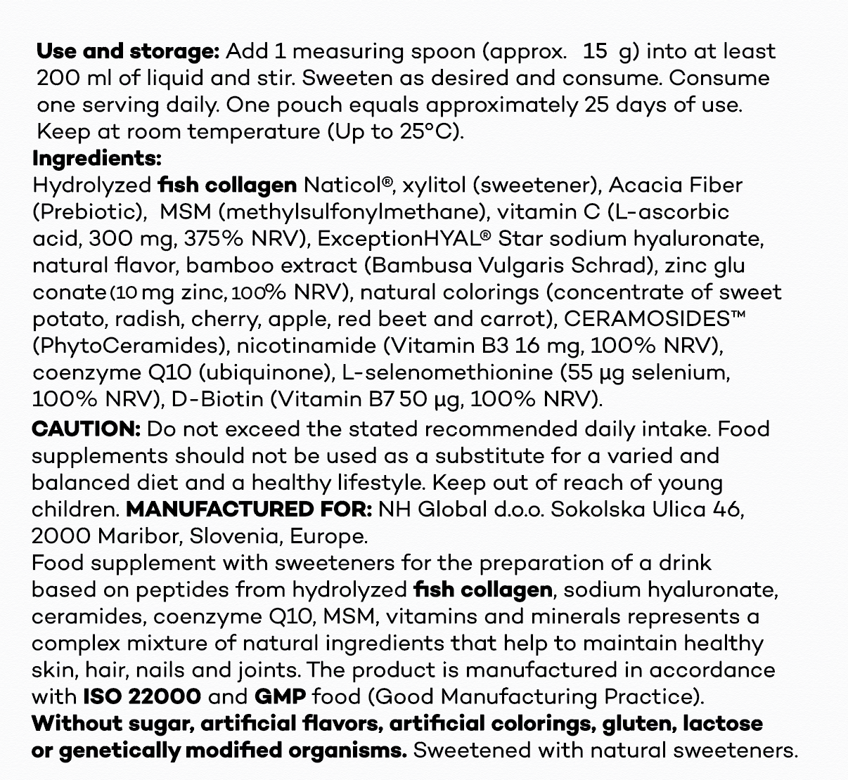 - Daily doses contain 5 g of peptides from hydrolyzed and patented fish collagen Naticol® 🐟